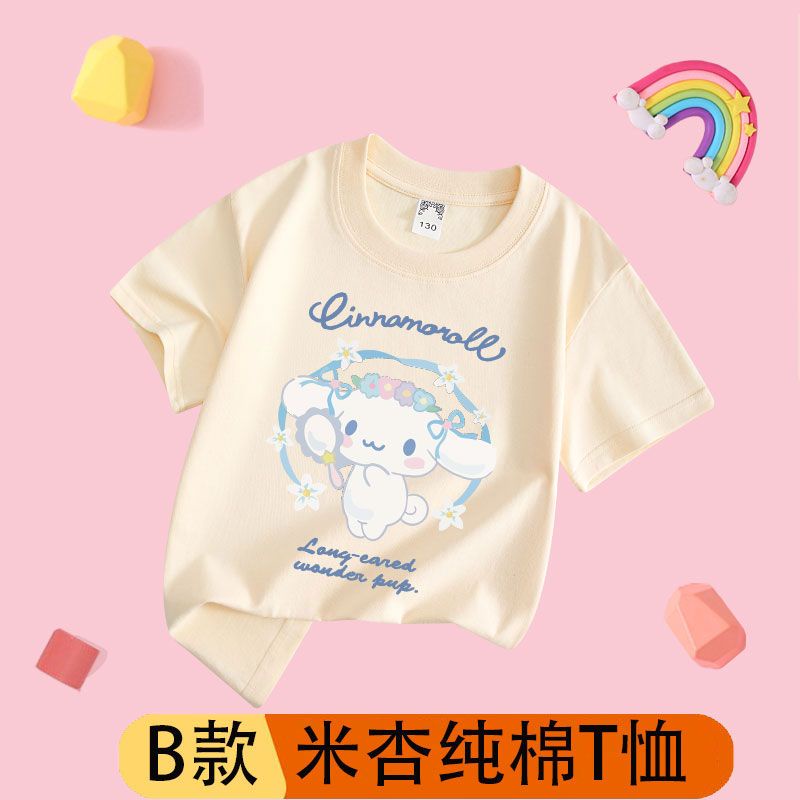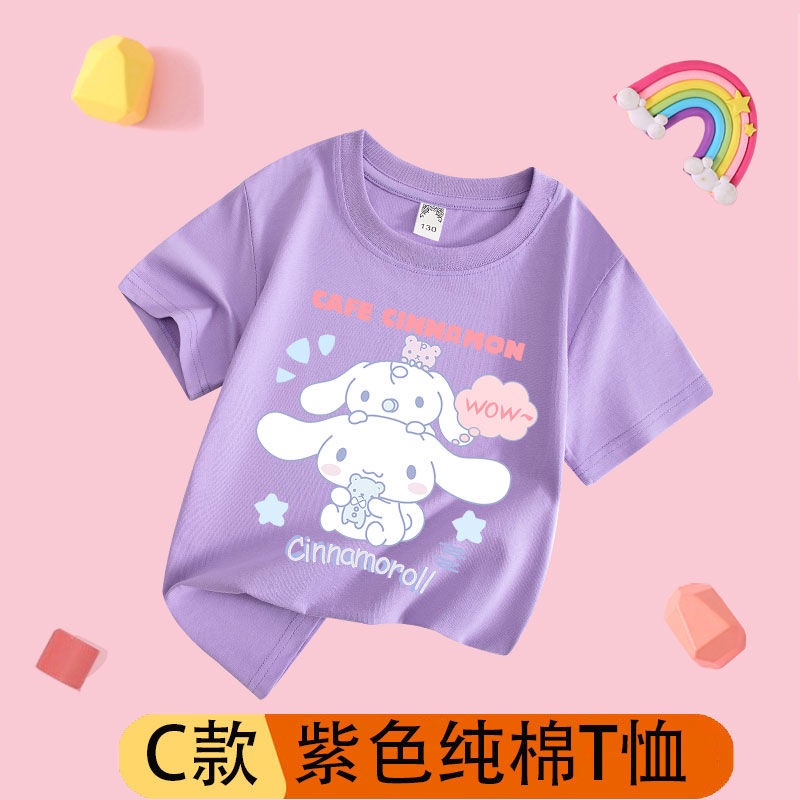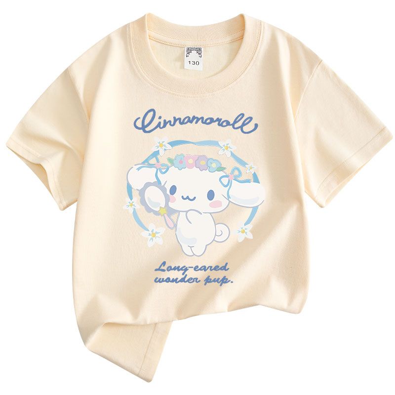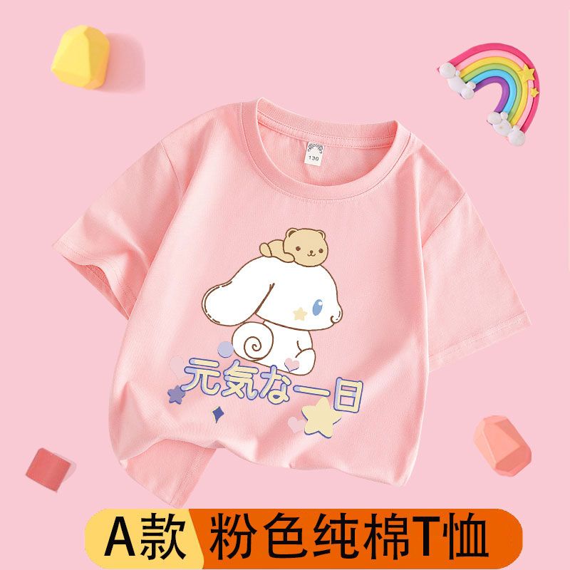 [3-piece-set]-100%-Cotton-Girls'-Shirt-Kids-Short-Sleeve-Girls'-Cinnamoroll-Shirt-Clothes-Children's-Big-Ear-Dog-Shirt-Short-Sleeve-T-shirt-Top