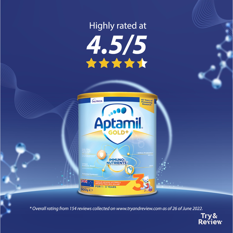 [Bundle of 4] Aptamil Gold+ Immuno-Nutrients Stage 3 Toddler Growing Up Formula Milk Powder 900g