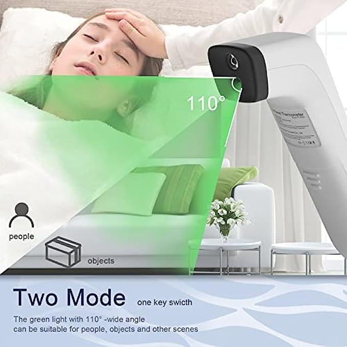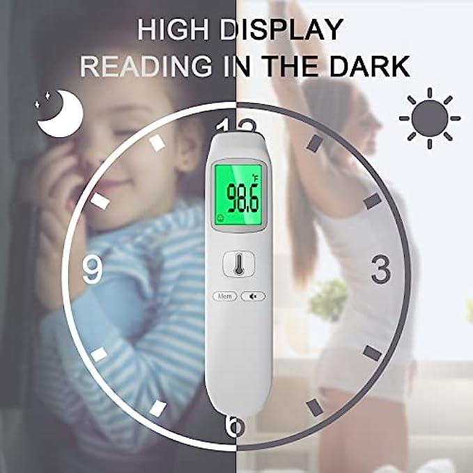Multi-Mode Thermometer for All Age: The thermometer for fever reads temperatures in ear and forehead for all ages, the temperature thermometer for adults, kids and infants. And it can also measure the object(water) temperature and room temperature. An ideal choice for public, hospitals, restaurants, schools, companies, homes, etc. (℃ and ℉ are easily switchable.)
