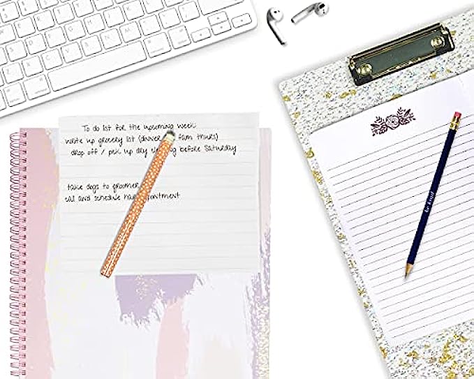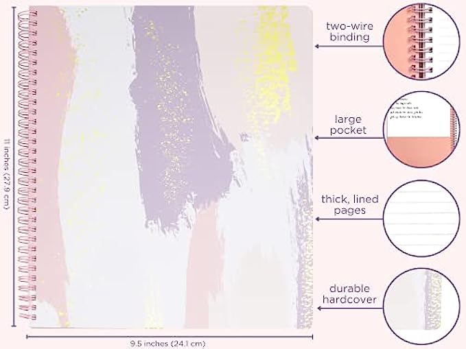 • INTERIOR POCKET: Features a durable hardcover with a pretty brush stroke paint design and a double sided storage pocket to keep loose notes organized
