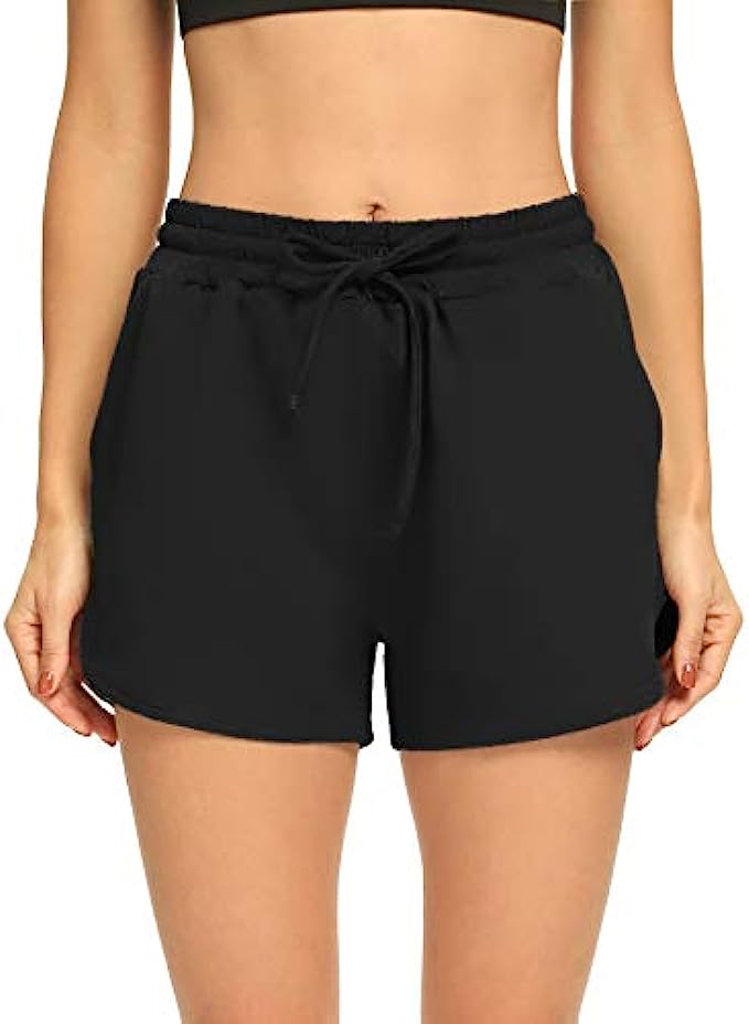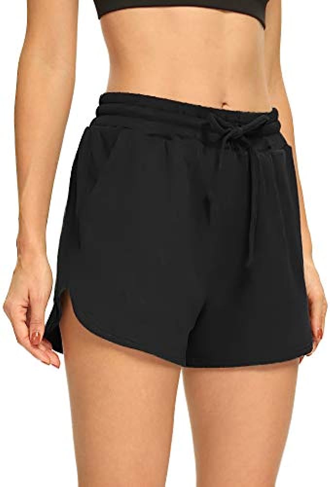 THANTH Womens 3" Yoga Shorts Elastic Waist Comfy Lounge Pajamas Workout Running Terry Jersey Shorts with Pockets