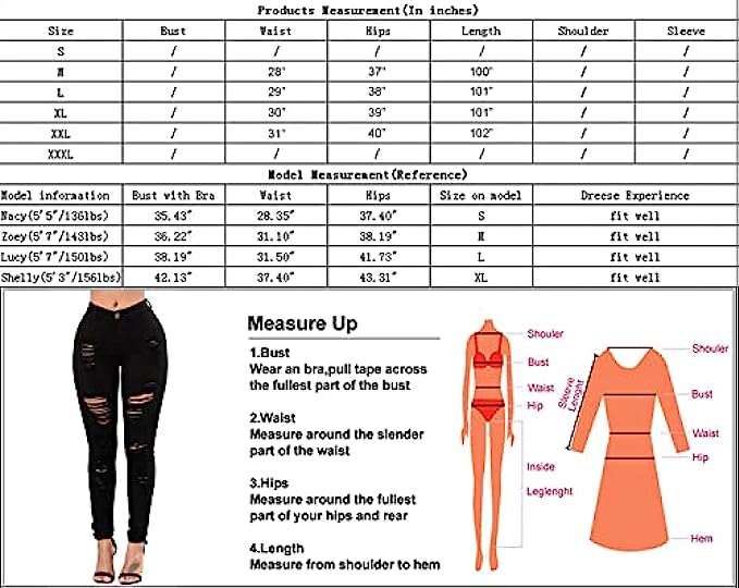 Button closure Machine Wash [ Material ] 78% Cotton, 20% Polyester, 2% Elastane. [ Comfortablel ] Soft and stretchy, comfortable cotton blend denim fabric,adapts well to the body. [ Fashion ] The distressed jeans hug your curves for a perfect fit, highlighting your silhouette and keeping you chic. [ FABRIC ] Made of Premium Ultra Stretch Fabric, even after repeated wearing, this denim stays true to original form. Most comfortable Stretchy waist, providing all around ease & roominess, never too tight or restrictive [ Size ] Classic five-pocket design. Machine wash, tumble dry. Imported. Measurements: Please see the size chart. Please note that measurements may vary by size.