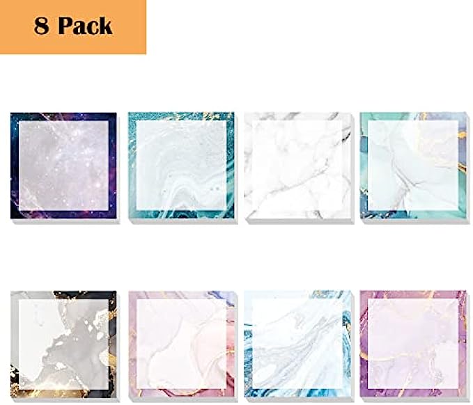 Package Includes 8 pads sticky notes set with 50 sheets per pad, with plenty of space. Each sticky note measures 3 x 3 inches, perfectly sized enough space for writing notes.