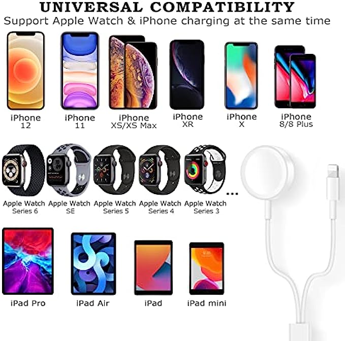 lifeegrn Update Version Smart iWatch Charger Wireless USB 6.5 ft/2 m Charging Cable for Apple Watch Series SE/7/6/5/4/3/2/1 & Phone 12/11/Pro/Max/XR/XS/XS Max/X&Pad Series